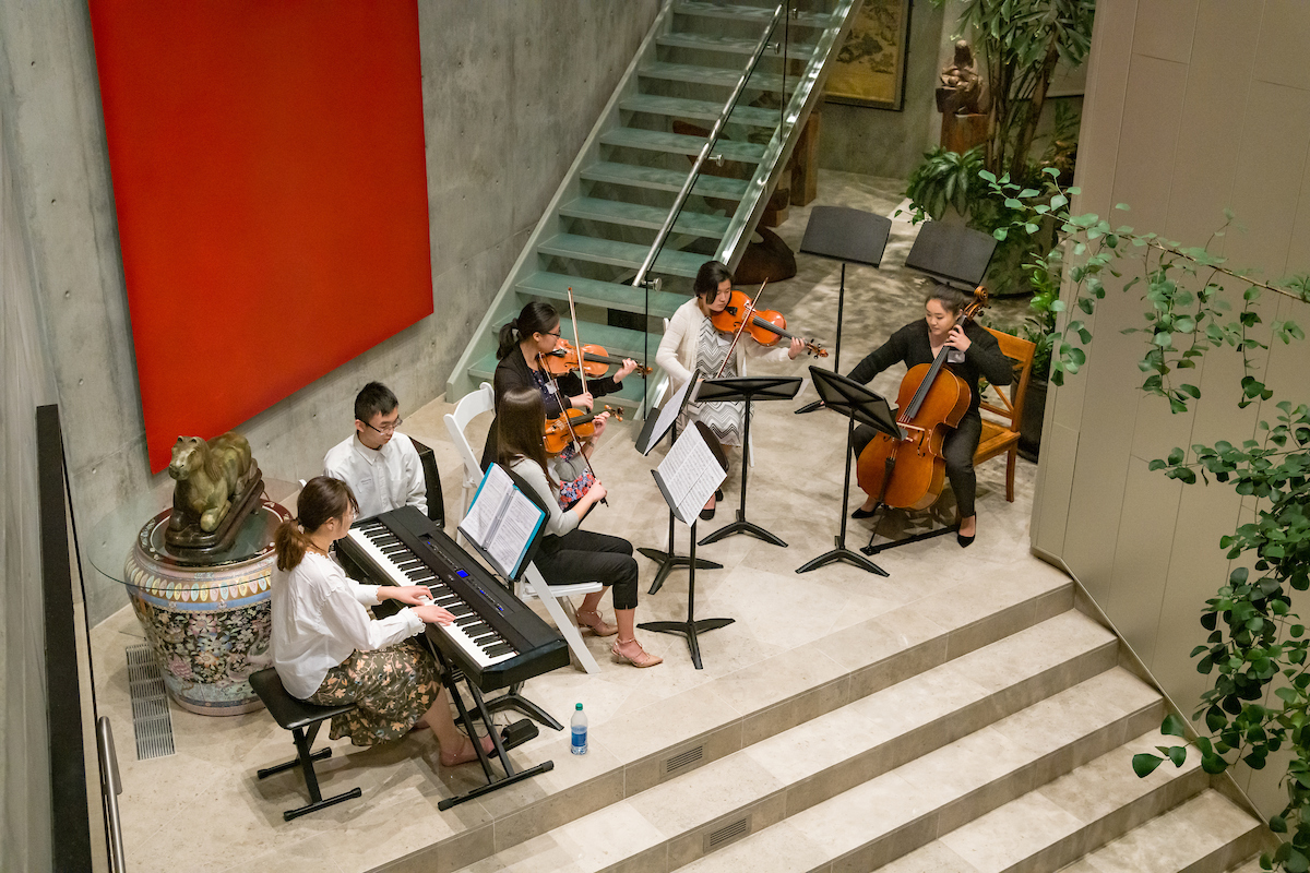 On Sunday, March 1, the Oxy community in Southern California gathered at the beautiful Malibu home of Charlie and Carrie Chen P’20 to experience the many facets of Oxy’s growing music department and to celebrate The Oxy Campaign For Good. Alumni and parents had the opportunity to meet the award-winning music faculty, including Ramona Gonzalez '09, who is a Los Angeles based musician and multimedia artist (performs as Nite Jewel) and is the Johnston-Fix Professor of the Practice in Songwriting at Oxy. Guests then had an inside-look at the expertly-designed audiophile room of Dr. Chen. The evening culminated with a moving performance by an Oxy student quintet led by Desiree La Vertu, Director of Choral and Vocal Activities and Chris Kim, Director of Instrumental Activities.
